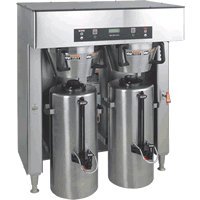 Bunn 39200.0000 Titan Dual ThermoFresh Brewer The TITAN 3-Gallon Dual Brewer from Bunn provides you with all of the tools necessary to meet the high-volume demands of your customers. Brew tw three-gallon servers of perfect coffee in 6 minutes or less. Brews 34.3 gallons (129.8 litres) of perfect coffee per hour. Coffee extraction controlled with pre-infusion and pulse brew digital temperature control and large sprayhead; coffee strength controlled with variable by-pass. BrewMETER allows automatic programming of pulse routine. SplashGard funnel and funnel locks help improve safety. Funnel has 28 ounce (.8 litre) capacity and paper filter retainers to eliminate fold-over. ThermoFresh servers are insulated to keep coffee hot and fresh for hours. Left or right faucet for hot water. *Image is a representation. Actual product may vary based on model size and options selected. Specifications: Manufacturer: Bunn Model: 39200.0000 List Price: $5100 Width: 35.63" Depth: 21.74" Height: 40.02" Voltage: 120 volts Amperage: 28.9 amps Wattage: 12000 watts Weight: 148 lbs.[]More detail ...